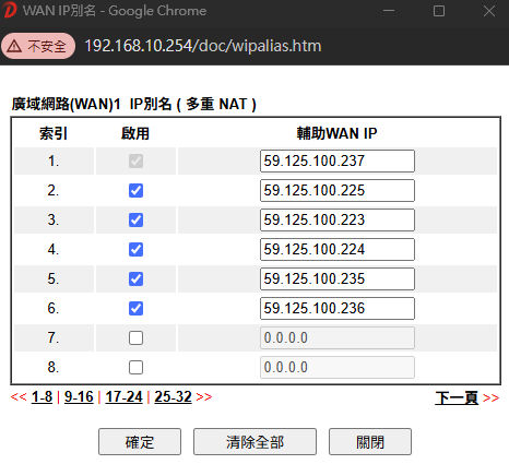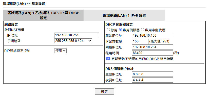 改完LAN的254配置後,防火牆會從 192.168.1.1 變成 192.168.10.254,此時WIFI會中斷,需要回座位將電腦接實體網路線。