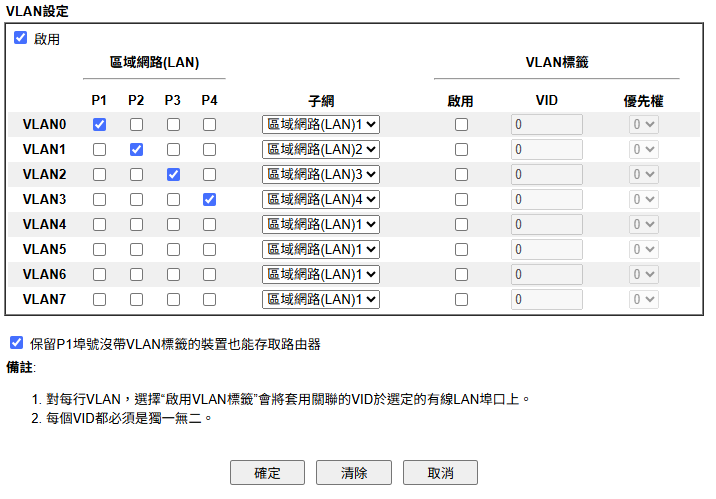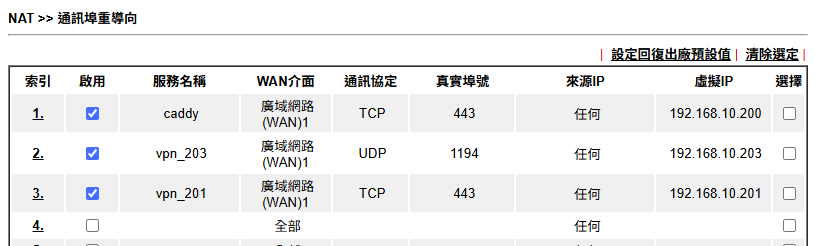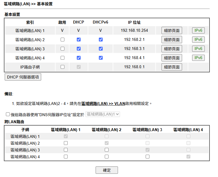 Vigor 2915 配置稍有不同,目前 WAN1 /LAN1 使用中
