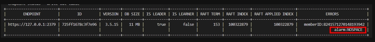 etc 報 空間不足,導致node都 unready