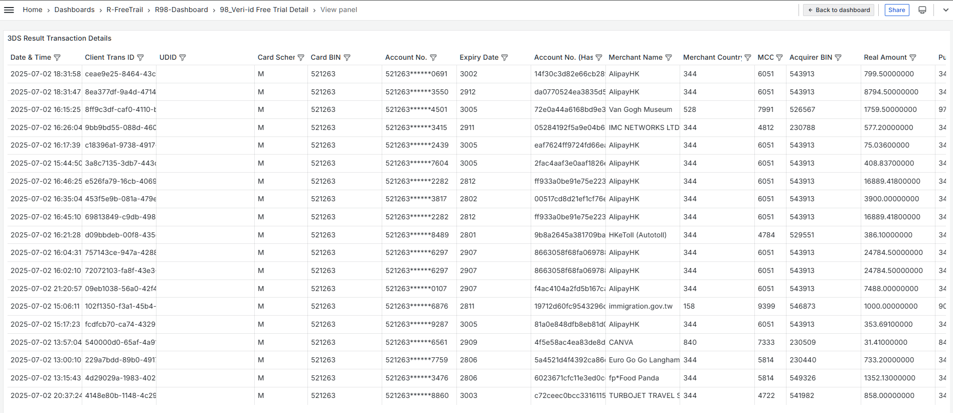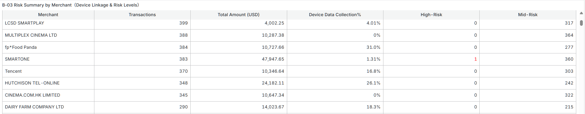 B-03 Risk Summary by Merchant(Device Linkage & Risk Levels