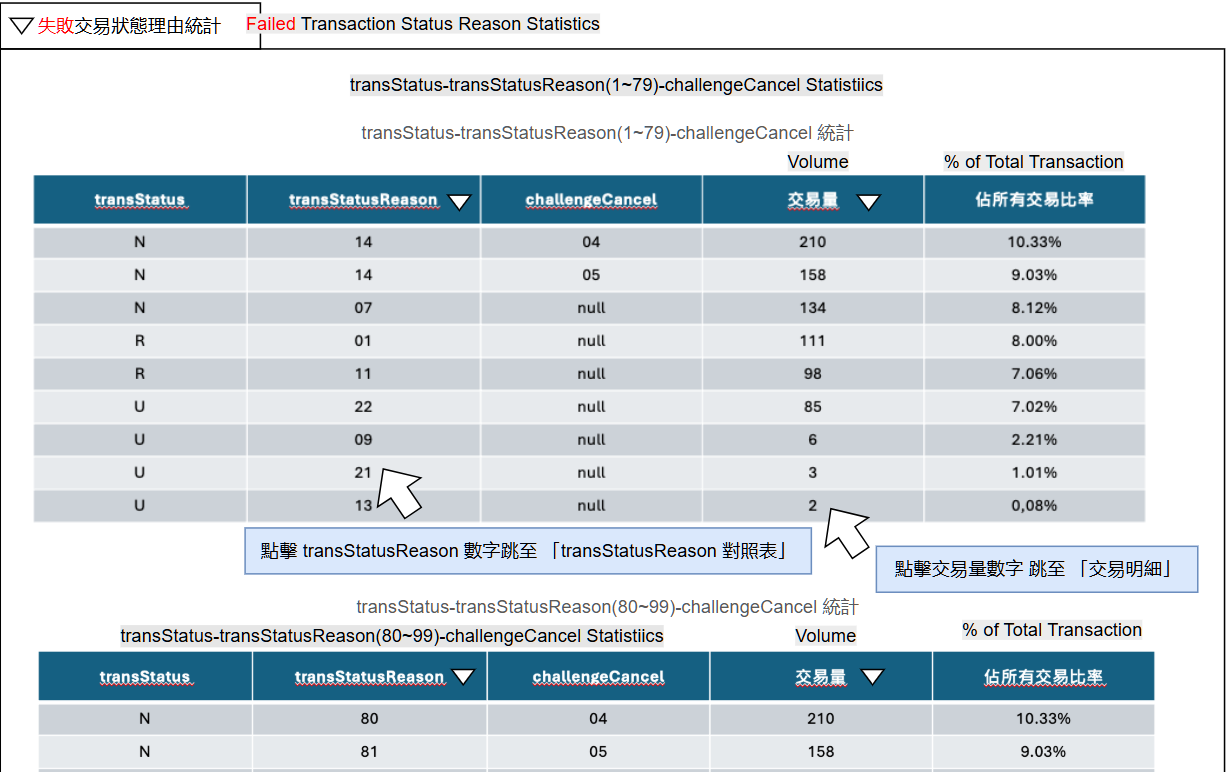 B. 失敗交易狀態理由統計