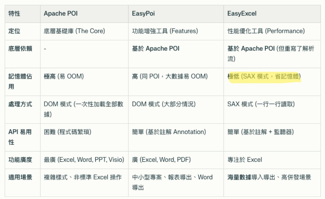 目前 EasyExcel 在 2024 年底已宣佈進入「維護模式」,不主動新增功能,只修復 Bug 。