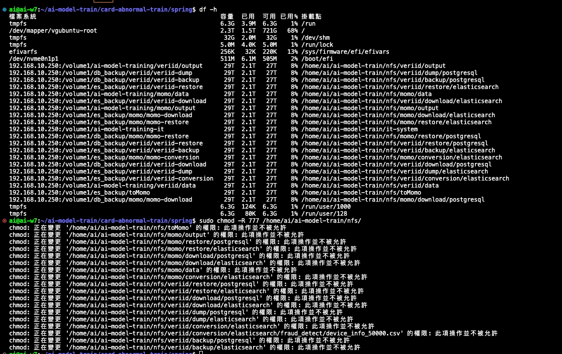 錯誤訊息: chown /home/ai/ai-model-train/nfs/veriid/data/card_abnormal: operation not permitted