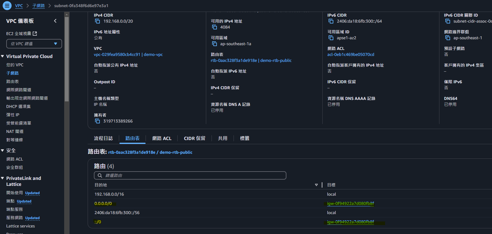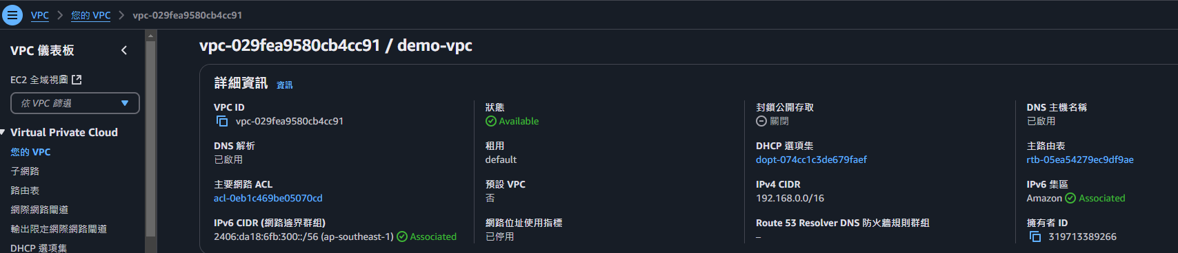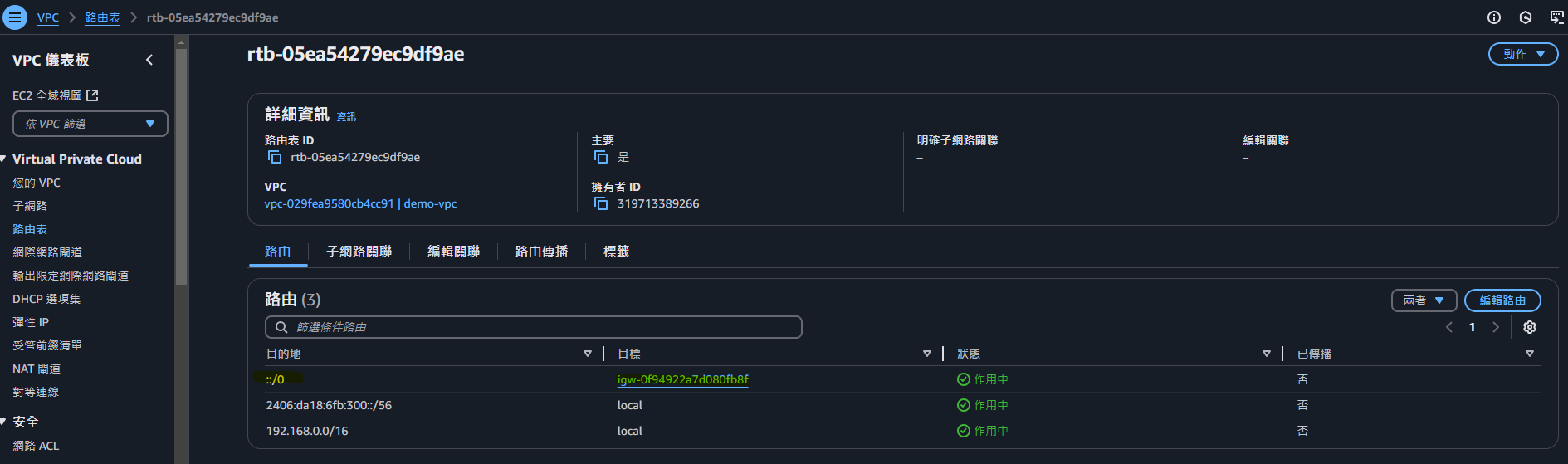 先到指定的VPC,設置 IPv6 CIDR