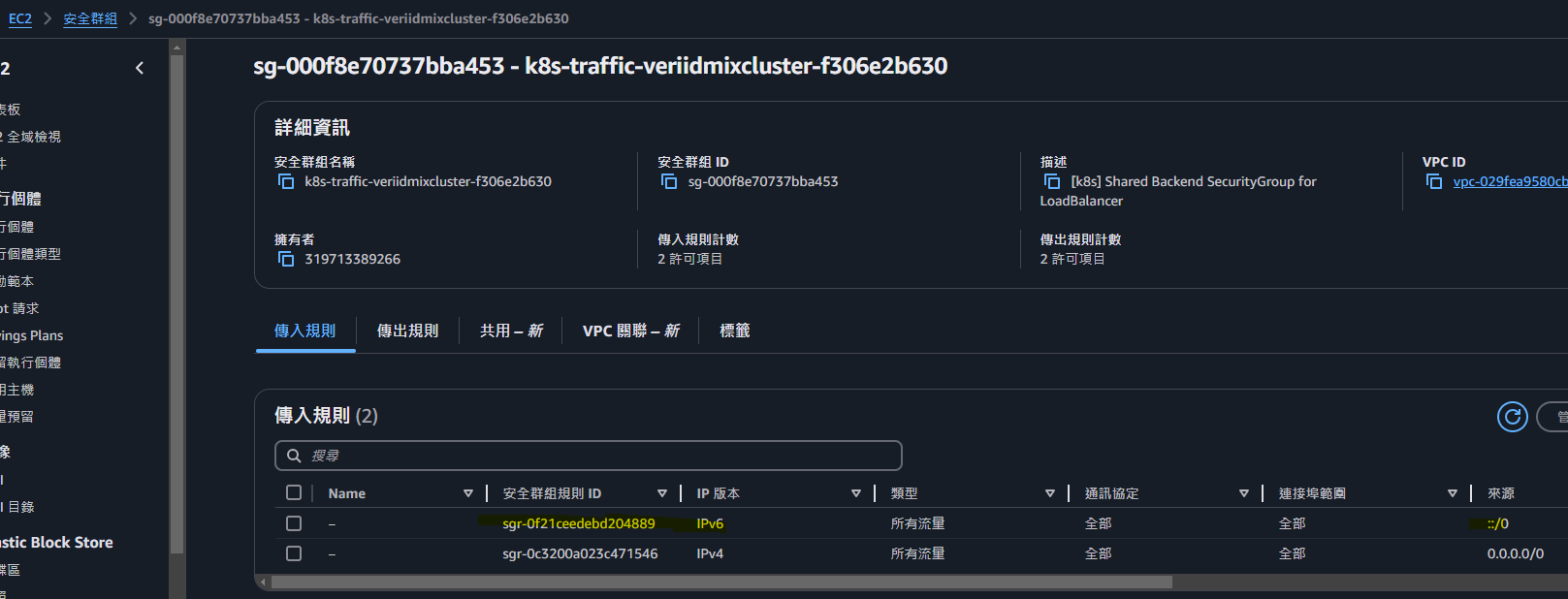 安全群組需要添加 IPv6 放行