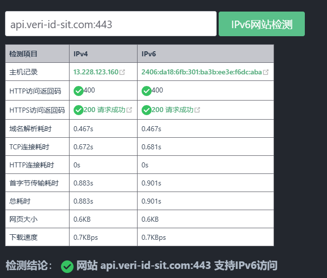 透過檢測網站確認IPv6是否通行